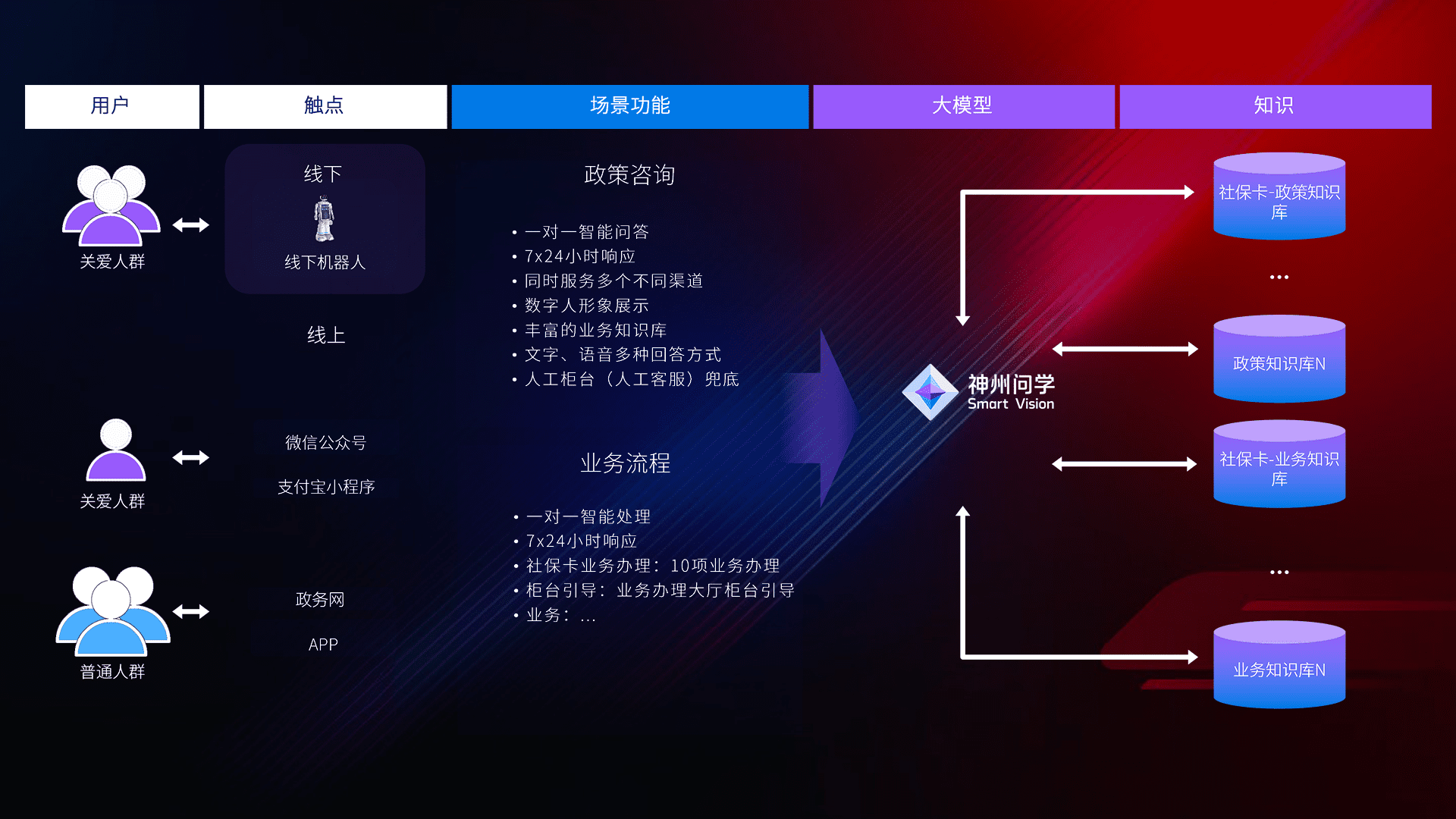 • 线上线下全覆盖:线上提供微信公众号、、支付宝小程序、、、政务网、、、app多种渠道,,,,与线下机器人形成完整服务体系。。